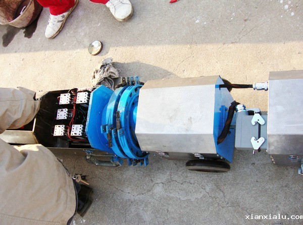 400星空体育官网手机版属于空心工件内表面喷涂液体及预处理设备。由驱动、行走、除锈、吸尘、喷涂、监控和电源七部分组成。机体为三节,用铰轴球头组件联接成一体。后部有行走电机驱动主动轮,五对从动轮安装在中部和前部。除锈部分由一个电机带动旋转架旋转,旋转架上安装三个小电机带动钢刷旋转除锈。用吸尘器吸收锈尘。喷涂电机带动旋杯高速旋转,把液体涂料甩喷到焊口区域。能在直径700~1000毫米管道内深达1公里以上自进自出。用无线遥控和视频图像直观,完成焊口定位、除锈、吸尘、喷涂全过程焊口补口作业。自动化程度和工效高,补口质量好,为国内管道施工提供了一种机、电、讯一体化自主创新设备,具有推广应用价值。